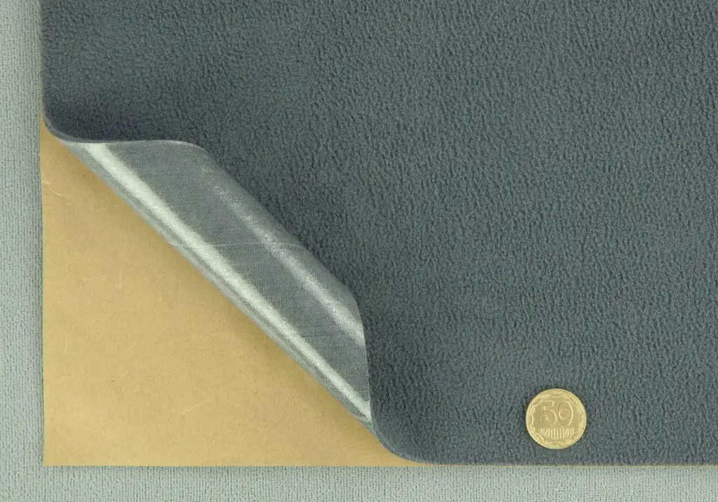 Карпет на клею - це самоклеючий матеріал з декоративною обробкою, що розтягується в усіх напрямках. Він покритий спеціальним клейовим шаром, що надає постійну липкість і еластичність. Клей виготовлений на основі синтетичного каучуку методом розплаву, що забезпечує високу адгезію та стійкість до вологи і температури до +85°C. Матеріал не втрачає своїх властивостей з часом і не боїться впливу вологи.
