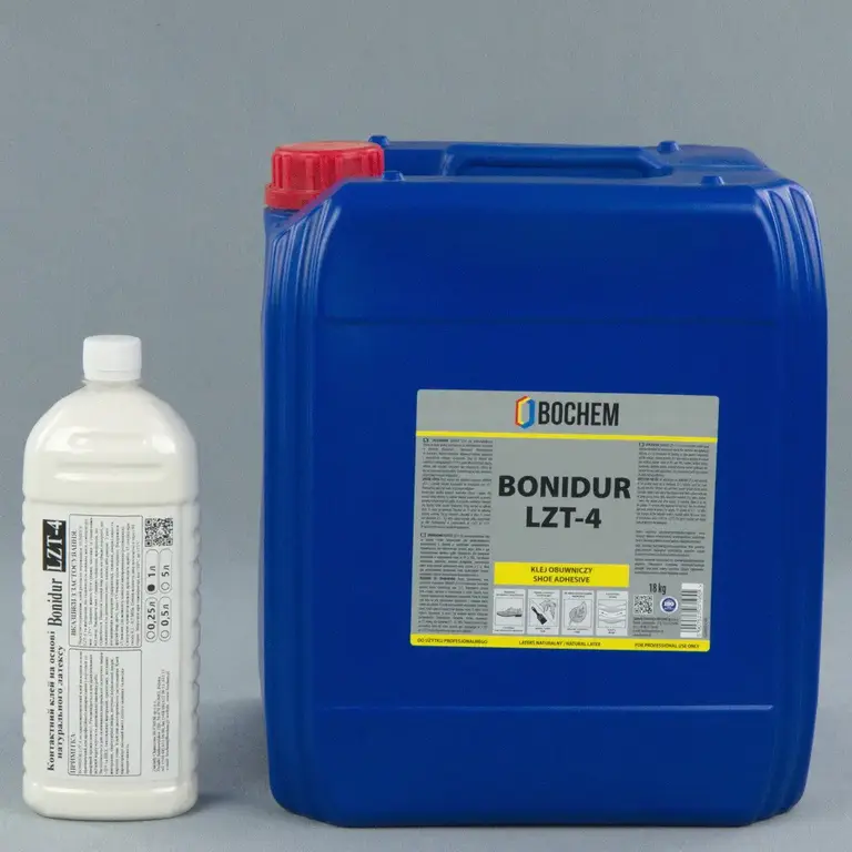 BONIDUR LZT-4 – це спеціальний клей на водній основі, розроблений для професійного використання в обувної та шкіряної промисловості. Він рекомендується для приклеювання деталей верху взуття, а також для допоміжних швейних робіт.