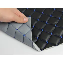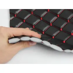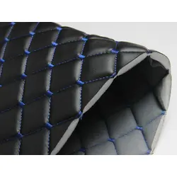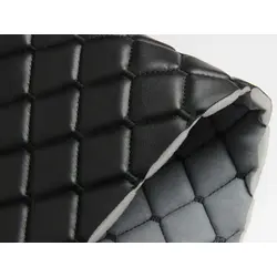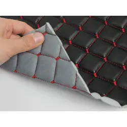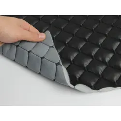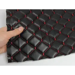 Стьобана екошкіра – це еластичний, морозостійкий матеріал, що відмінно підходить для автомобільного інтер’єру. Основою виробу є замш, який забезпечує міцність, а верхній шар покритий поліуретаном, що додає довговічності та естетичної привабливості.