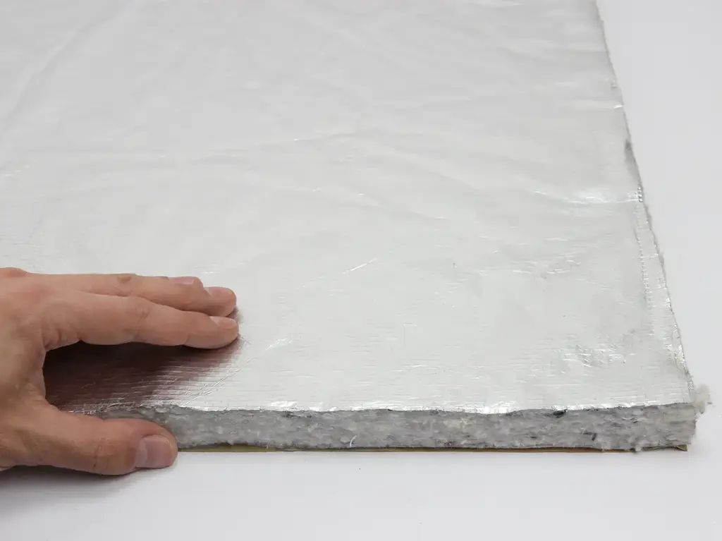 Фольгований шар, посилений склосіткою, надає конструкції міцності, захищає повсть від механічних пошкоджень і відображає теплову енергію. Для досягнення максимального ефекту шумо- та теплоізоляції рекомендується залишити повітряний прошарок 10–15 мм між фольгою та зовнішнім покриттям.