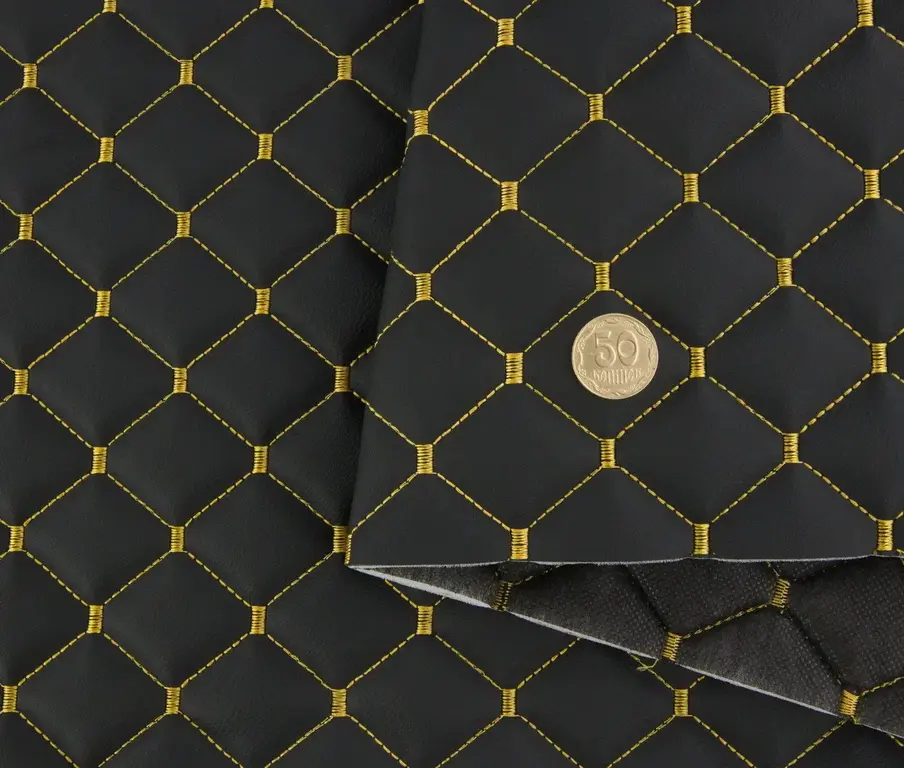 Стьобаний шкірзам Maldive чорний «Ромб» (жовта нитка)