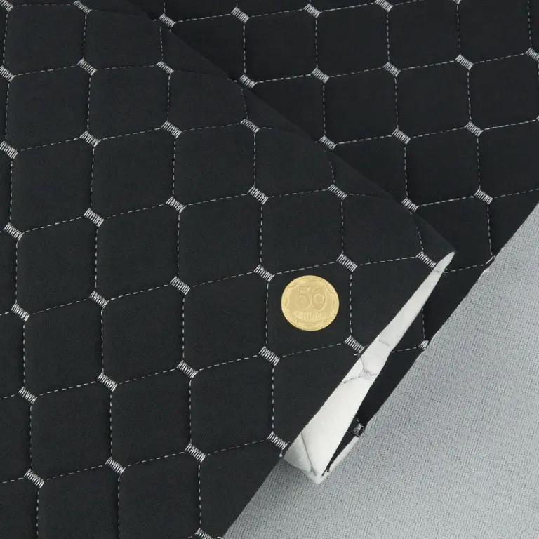 Стьобаний велюр Венус «Чорний Ромб прошитий світло-сірою ниткою» на поролоні 6мм – преміальний оббивний матеріал